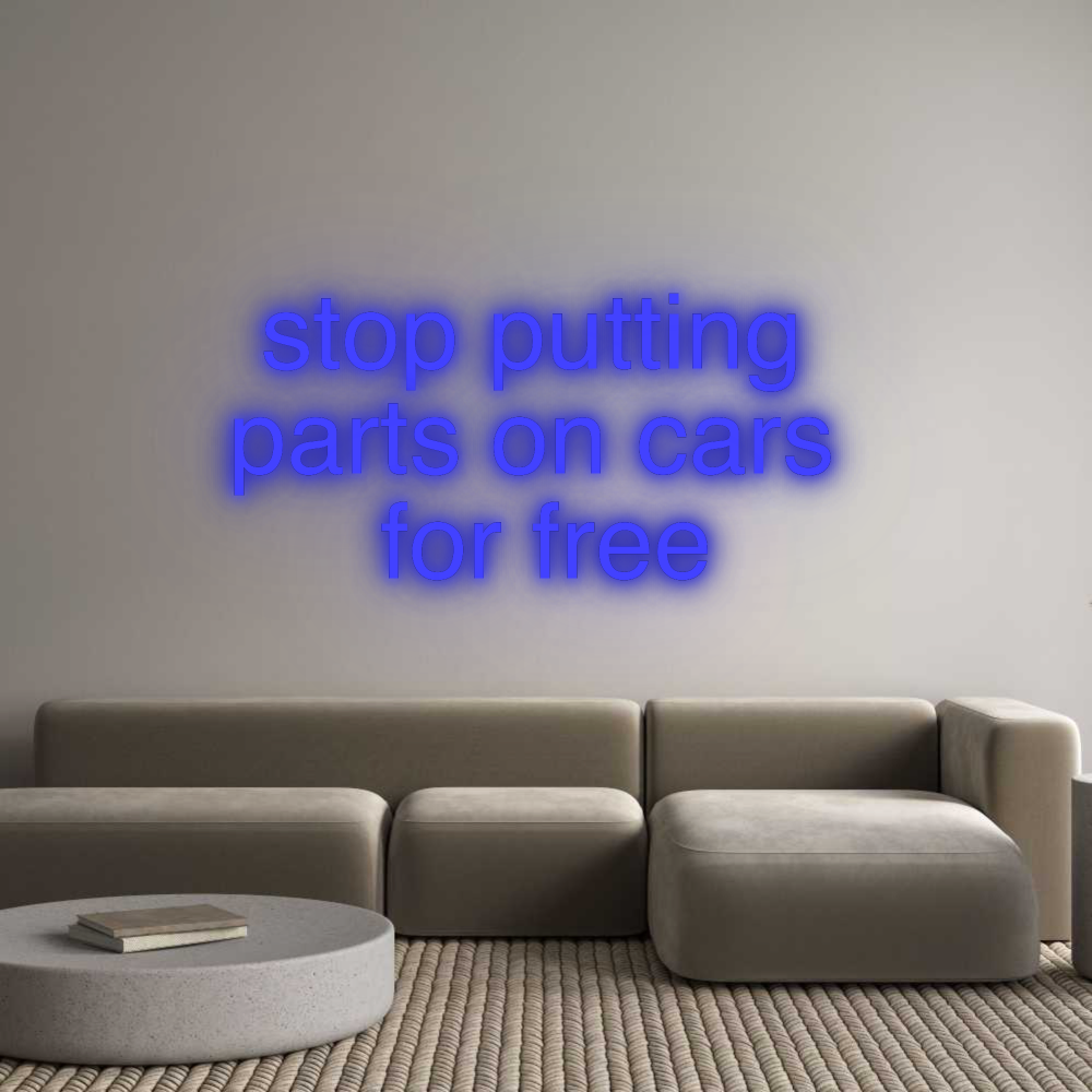 Colours/Fonts: stop (Font: Helvetica, Color: Blue) putting (Font: Helvetica, Color: Blue) parts (Font: Helvetica, Color: Blue) on (Font: Helvetica, Color: Blue) cars (Font: Helvetica, Color: Blue) for (Font: Helvetica, Color: Blue) free (Font: Helvetica, Color: Blue)